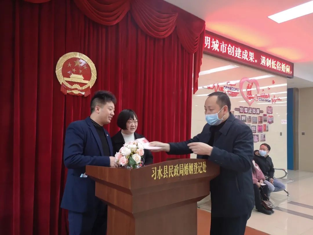 习水县:77对新人领取结婚证