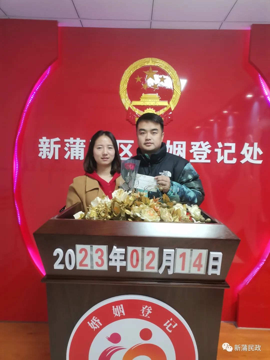 据统计,2月14日共为93对新人办理结婚登记,发放资料300余份,满足了新人们在这个浪漫的日子里登记结婚的美好意愿,极大提升了他们的幸福感。