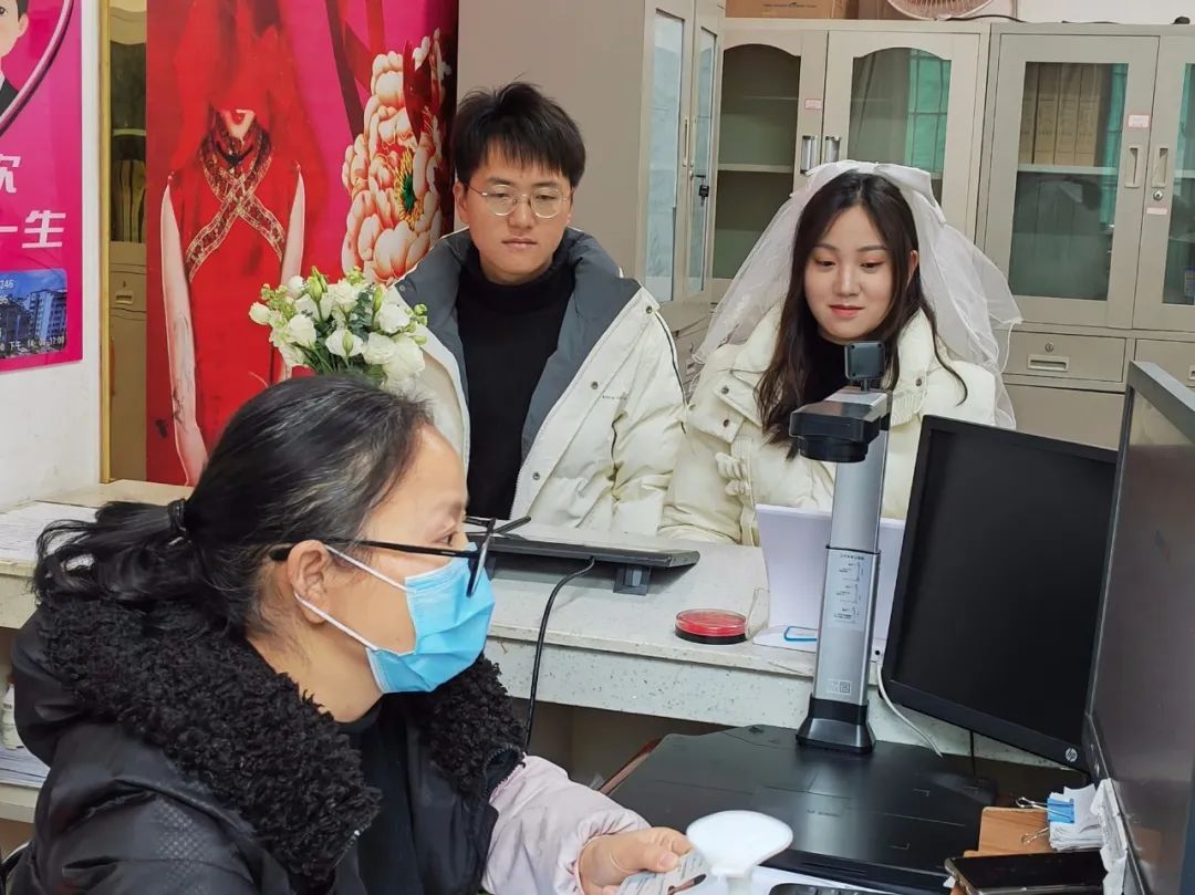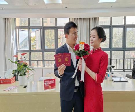绿色通道,军人优先办。2月14日当天,熊先生因工作等原因没在网上预约也未在政务大厅窗口进行取号,看着“长龙”似的队伍,他和伴侣显得格外着急。细心的工作人员前来询问,得知熊先生是一名军人也带了士官证后热心地说:“不用担心,军人可以优先办理,不用取号也能登记。”在工作人员的带领下,他们顺利领到了结婚证,两人脸上洋溢着幸福的笑容。