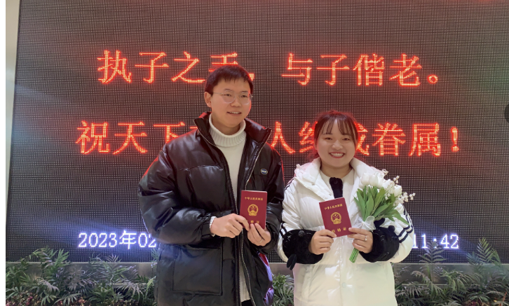 据统计,“2·14”共办理婚姻登记53对,整个登记工作忙而不乱、井然有序,登记合格率100%。