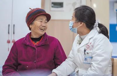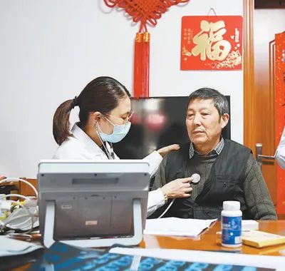 安徽省合肥市蜀山区琥珀街道琥珀潭社区家庭医生团队走进居民家中,为老年人检查身体。陈三虎摄(影像中国)