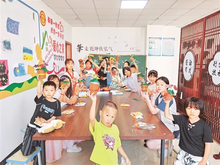 毕节市七星关区甘河街道组织儿童开展手工兴趣小组活动。