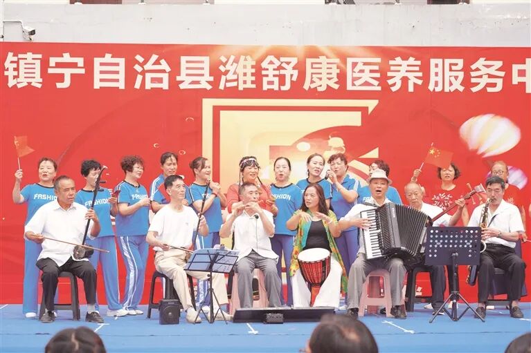 安顺市镇宁自治县潍舒康医养服务中心组织老人开展文艺活动。