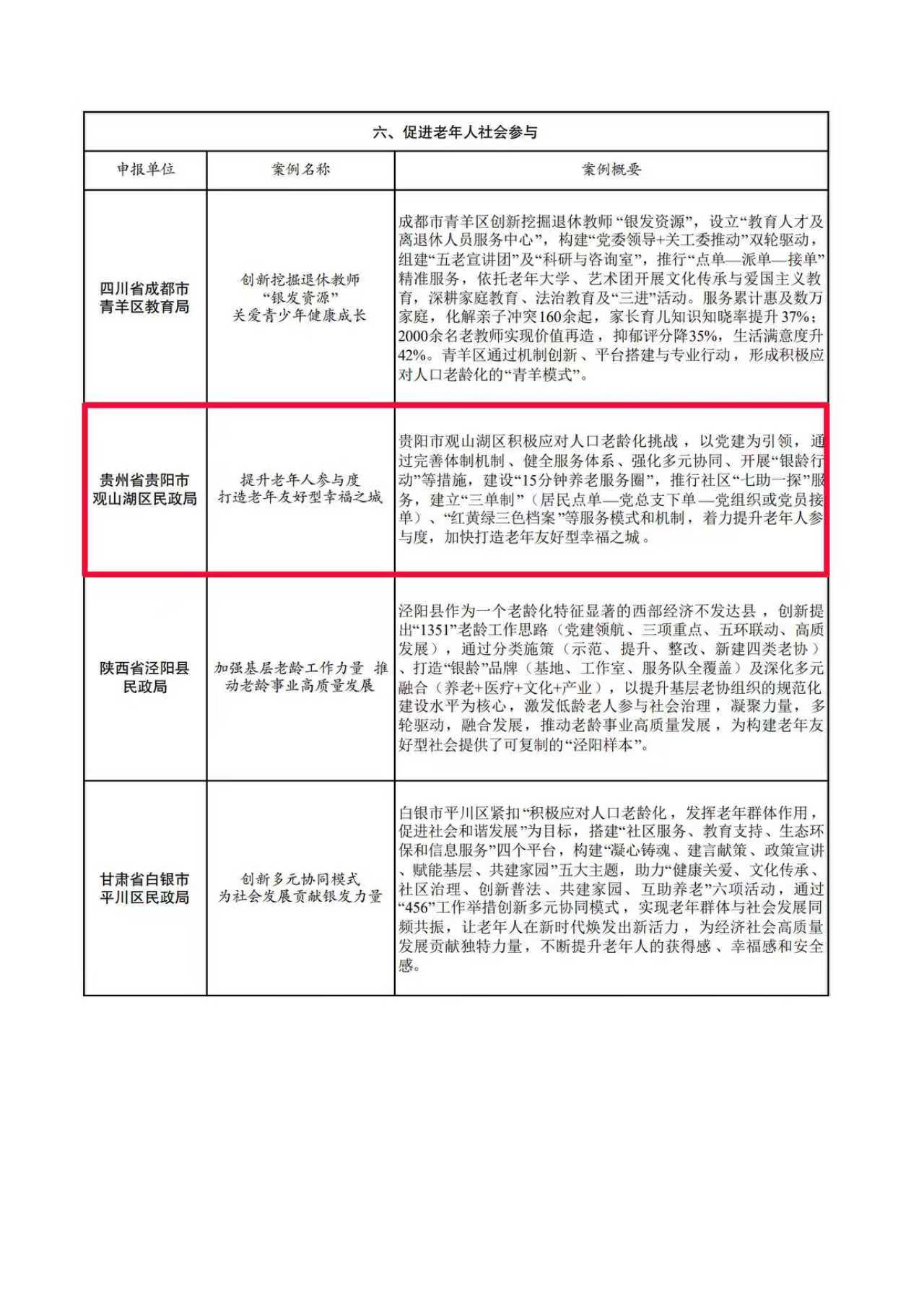 为深入学习贯彻习近平总书记关于老龄工作的重要指示精神,全面贯彻落实党的二十大和二十届二中、三中全会关于老龄工作的决策部署,持续推进老年友好型社会建设,根据《全国老龄办关于开展老年友好型社会建设典型案例征集工作的通知》(全国老龄办函〔2025〕32号)有关工作安排,经过地方申报、省级老龄工作部门初审推荐、专家评审和综合比选,全国老龄办遴选了94个老年友好型社会建设典型案例,现予以发布,供各地参考借鉴。