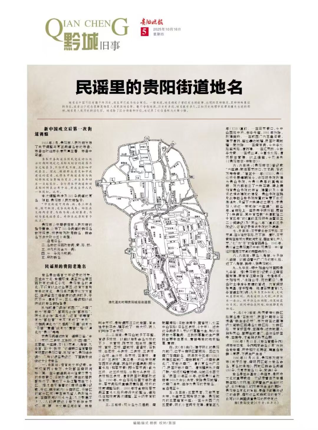 地名是社会基本公共信息,是历史文化的重要载体。它记录着自然地理特征和人文风貌,沉积着生产生活的印记,也折射出人们对美好生活的期盼。贵阳地名变化的背后,是诸多故事与记忆的连根,借助这些或新或旧的地方,也可以从侧面读懂贵阳的历史变迁。