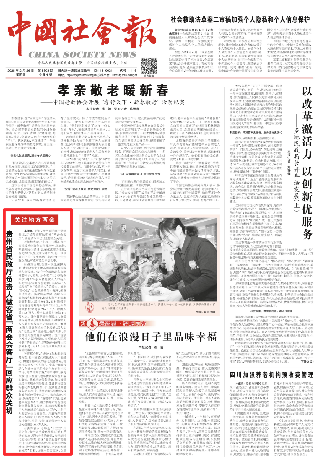 孙拥辉表示,今年是“十五五”开局之年,贵州省民政系统将以更加昂扬的姿态、更加务实的作风,答好新时代的民生答卷,实现“养老服务扩容提质、社会救助精准高效、社会福利温暖精细、社会事务惠民便民、社会治理赋能规范”目标,让群众笑容更多、心里更暖。