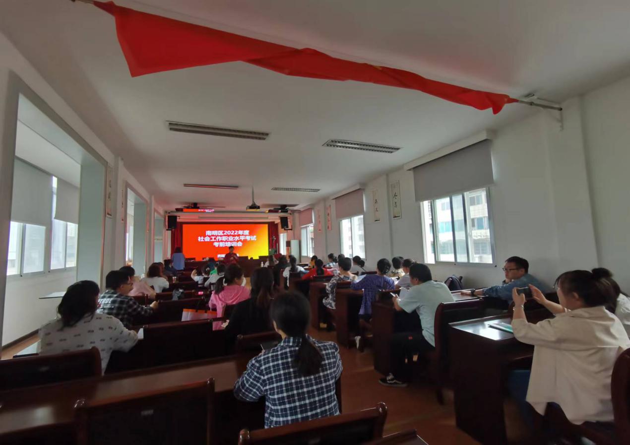 6月10日南明区民政局举办“南明区民政局2022年社会工作者职业水平考试考前培训”专题讲座。邀请高校专业教师为已报名参加2022年社会工作者职业水平考试的南明区民政局干部职工和区内社区工作者共50余名人员,围绕考试要点、答题技巧、复习重点等进行有针对性的讲解。