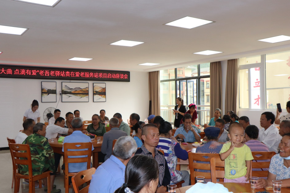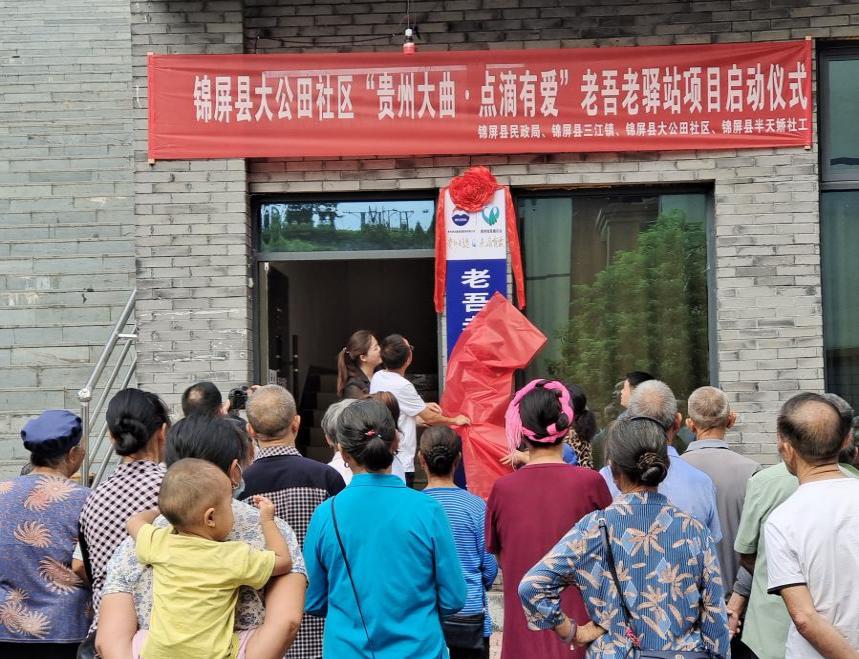 9月2日上午,在锦屏县大公田社区有一群老人朝着“老吾老驿站”聚集,他们相谈甚欢、其乐融融的景象使路过的人感到好奇。原来是“老吾老驿站”——贵州大曲点滴有爱“老吾老驿站”项目(贵在爱老)锦屏服务站正在举行式启动仪式。
