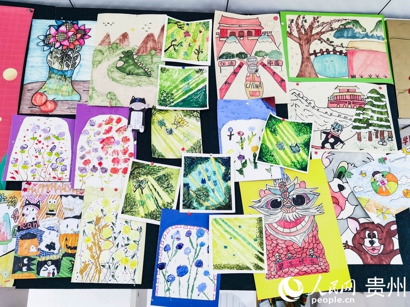 部分儿童的画作展示。人民网记者 王秀芳摄