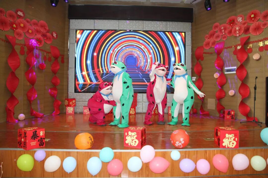 文艺演出在欢快的律动舞蹈《恭喜发财》中拉开帷幕,表演者们在台上大大方方地跟着节奏蹦蹦跳跳,大家也被这份欢乐所感染,跟着节奏拍手。随后欣赏了职工和儿童共同表演的朗诵《我爱上班》《爱的港湾》、舞蹈《铃铛舞》《趣蛙》、歌曲《中国人》《精忠报国》、手语舞《感恩的心》、舞蹈串烧《青春NO.1》、合唱《上春山》等精彩节目,表演者们载歌载舞,快乐地展现自己,每一个节目都经过精心准备,表达了对新年的期许,观众们掌声连连,欢声笑语不断。