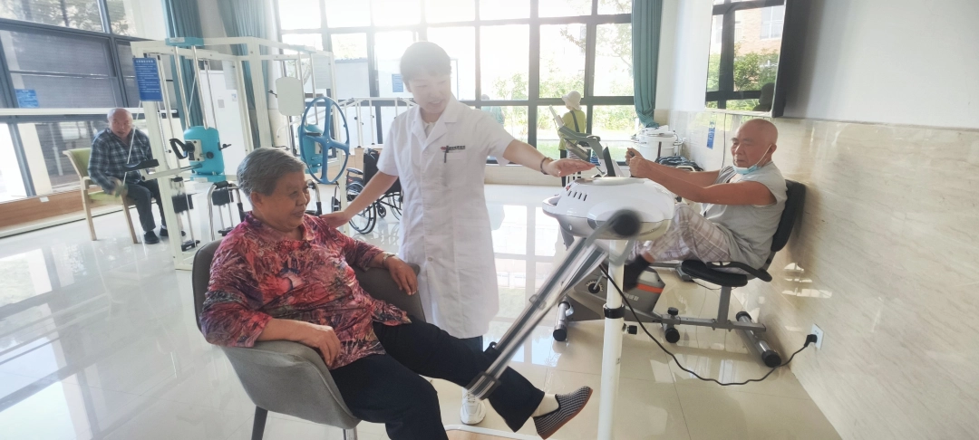 贵州省国投健康长者公寓的工作人员在指导老人进行康复训练 高荣华 摄