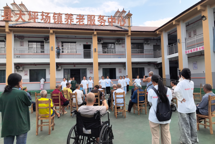 每逢节日,大坪场镇工作人员都要编排节目为老人们表演文艺节目。