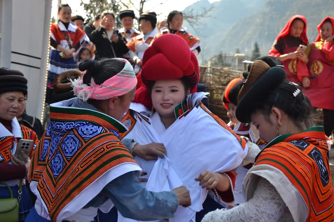 2月21日,农历正月初五,乌蒙山区年味正浓。在赫章县古达乡和平村,一场简朴而温馨的苗家婚礼如期举行,没有高额彩礼的牵绊,没有铺张浪费的排场,亲友们身着民族盛装,真诚的祝福与文明的新风相互交融、悄然浸润——这是赫章县深入推进移风易俗、涵养文明乡风的生动缩影,更是乌蒙山深处乡村治理与文明建设的鲜活注脚。