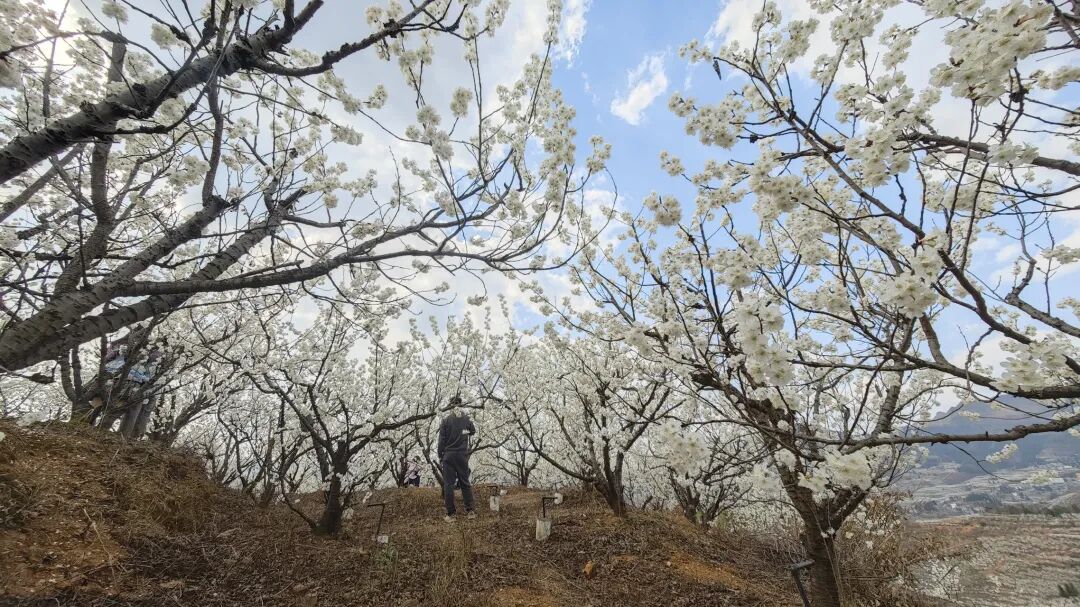 春风轻轻拂过河谷两岸,雪白的花潮涌动,一眼望去,尽是温柔烂漫;漫步花间,步步皆是诗意。