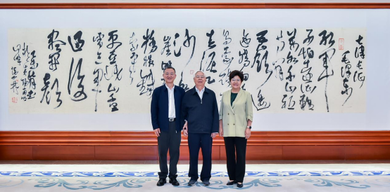 [图为:省政协原副主席、总会第三届会长陈敏(左),省人大常委会原副主任、总会第二届会长杨序顺(中)与总会新任会长罗宁(右)合影留念,三位会长亲切握手,传承善行,续写慈善新篇]