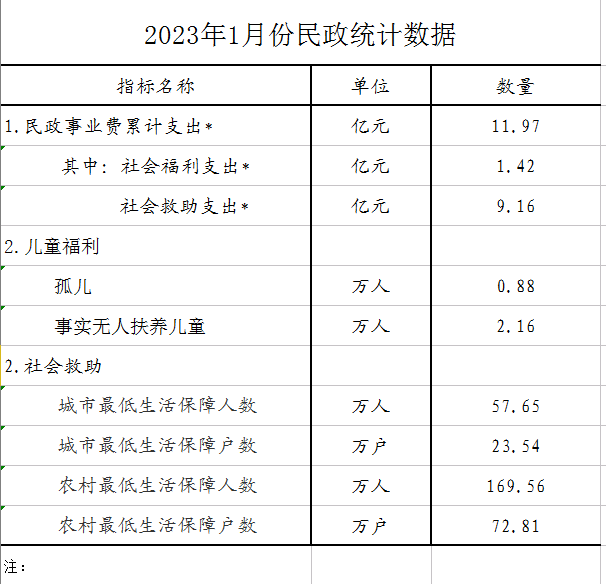 • 信息名称: 贵州省2023年1月份民政事业统计月报