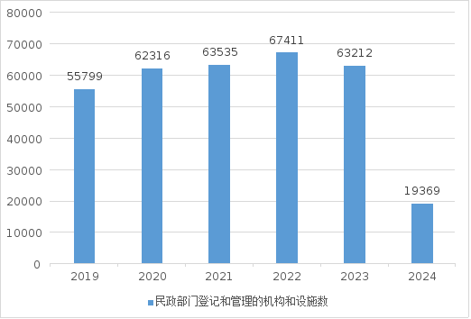图1 2019—2024年民政部门登记和管理的机构和设施情况