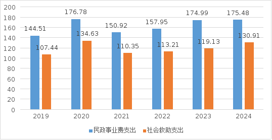 图2 2019—2024年民政事业费支出情况