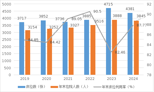 截至2024年底,全省共有民政部门管理的精神卫生服务机构11个,床位数4381张,年末在院人数3845人。