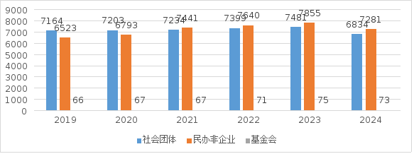截至2024年底,全省共有社会组织14188个(当年新登记908个),其中:社会团体6834个,民办非企业单位7281个,基金会73个。全年涉及社会组织行政执法共497起,其中涉及社会团体298起,涉及民办非企业单位199起。