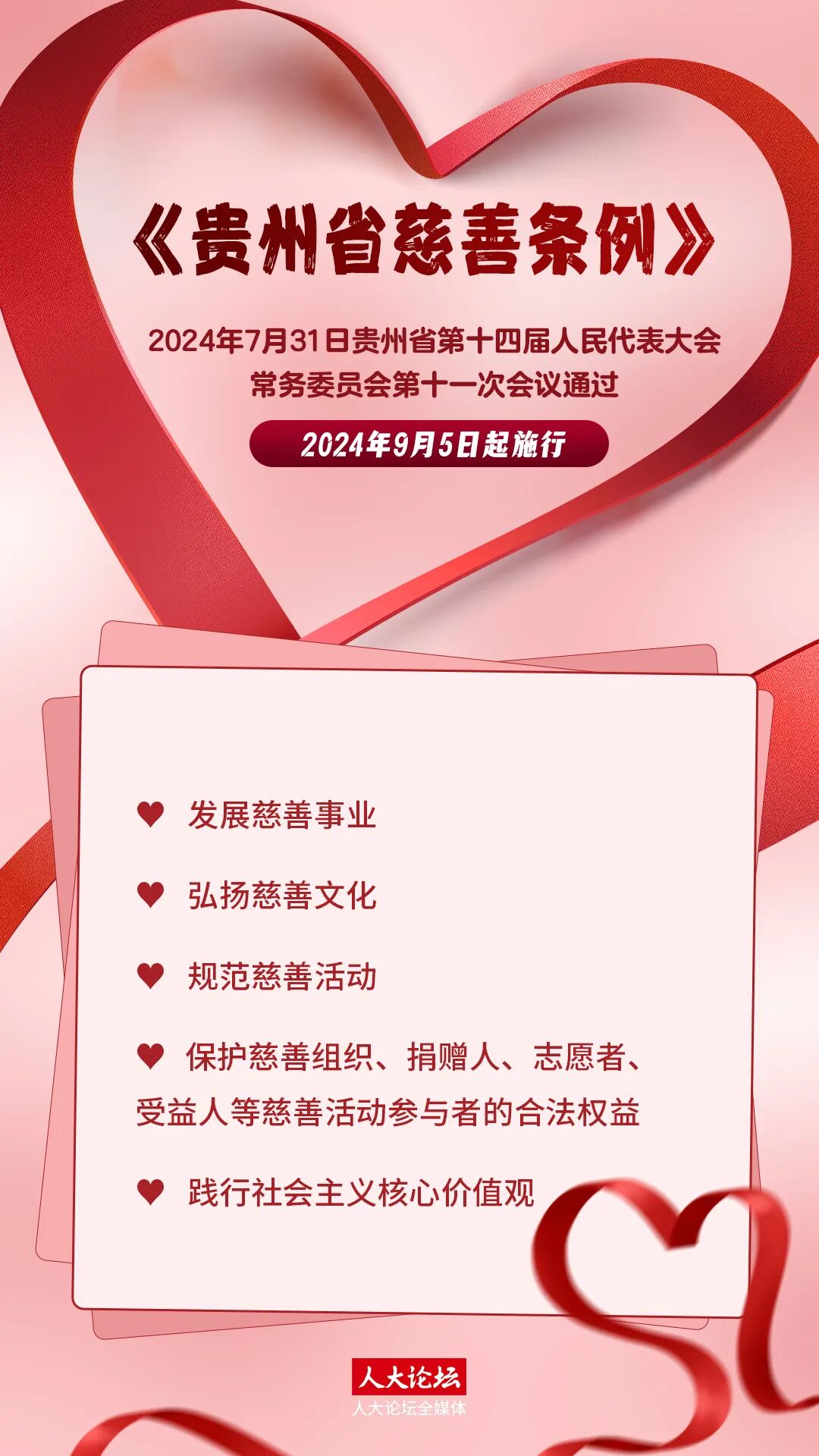 根据《条例》,每年9月5日“中华慈善日”所在周为“贵州慈善周”,集中开展慈善活动和文化宣传等。省设立“贵州慈善奖”。市州、县级人民政府根据国家和省有关规定对在慈善事业发展中做出突出贡献的自然人、法人和非法人组织予以表彰。