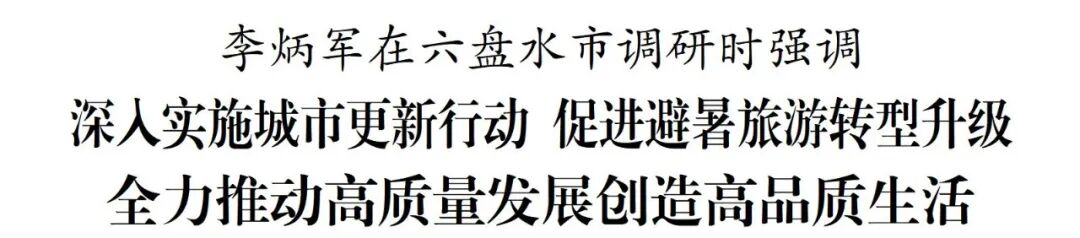 7月21日至22日,省委副书记、省长李炳军到六盘水市高新区、钟山区调研。他强调,要深入学习贯彻习近平总书记在贵州考察时的重要讲话精神,落实中央城市工作会议精神,认真践行人民城市理念,深入实施城市更新行动,发挥比较优势促进避暑旅游转型升级,全力推动高质量发展,为人民创造高品质生活。副省长郭成林参加。