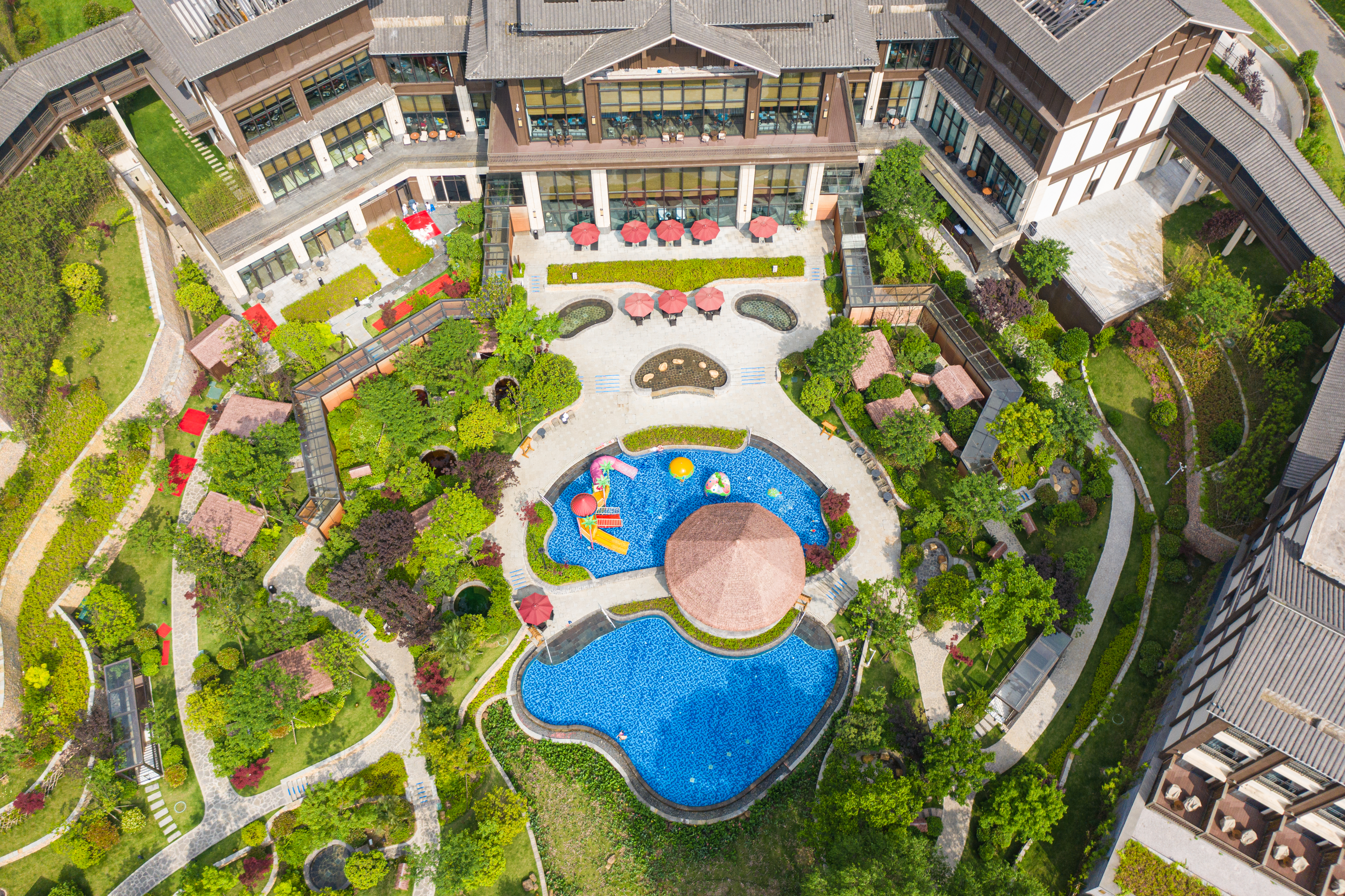 温泉区域的建筑设计更是巧妙地融入了当地文化符号。蜡染图案装饰的休息区,那一幅幅精美的蜡染作品,仿佛在诉说着苗族的传说和故事;以鸟笼为造型的特色汤池,造型独特,充满了创意和趣味;展现苗族银饰工艺的装饰细节,那些精美的银饰图案,闪耀着苗族人民精湛的技艺光芒。就连38个功能泡池的命名也充满地域特色:“六福滋补区”“四大美人区”“苗言苗语区”等,每个区域都承载着特定的文化寓意。特别是“药浴汤”等特色泡池,直接传承了苗族传统的药浴文化,将新鲜草药与温泉水结合,形成独特的养生配方,让游客在泡温泉的同时,也能体验到苗族医药的神奇功效。当山水成为背景,文化成为点缀,云沁温泉就像一幅绚丽多彩的文化织锦,展现出独特的魅力。