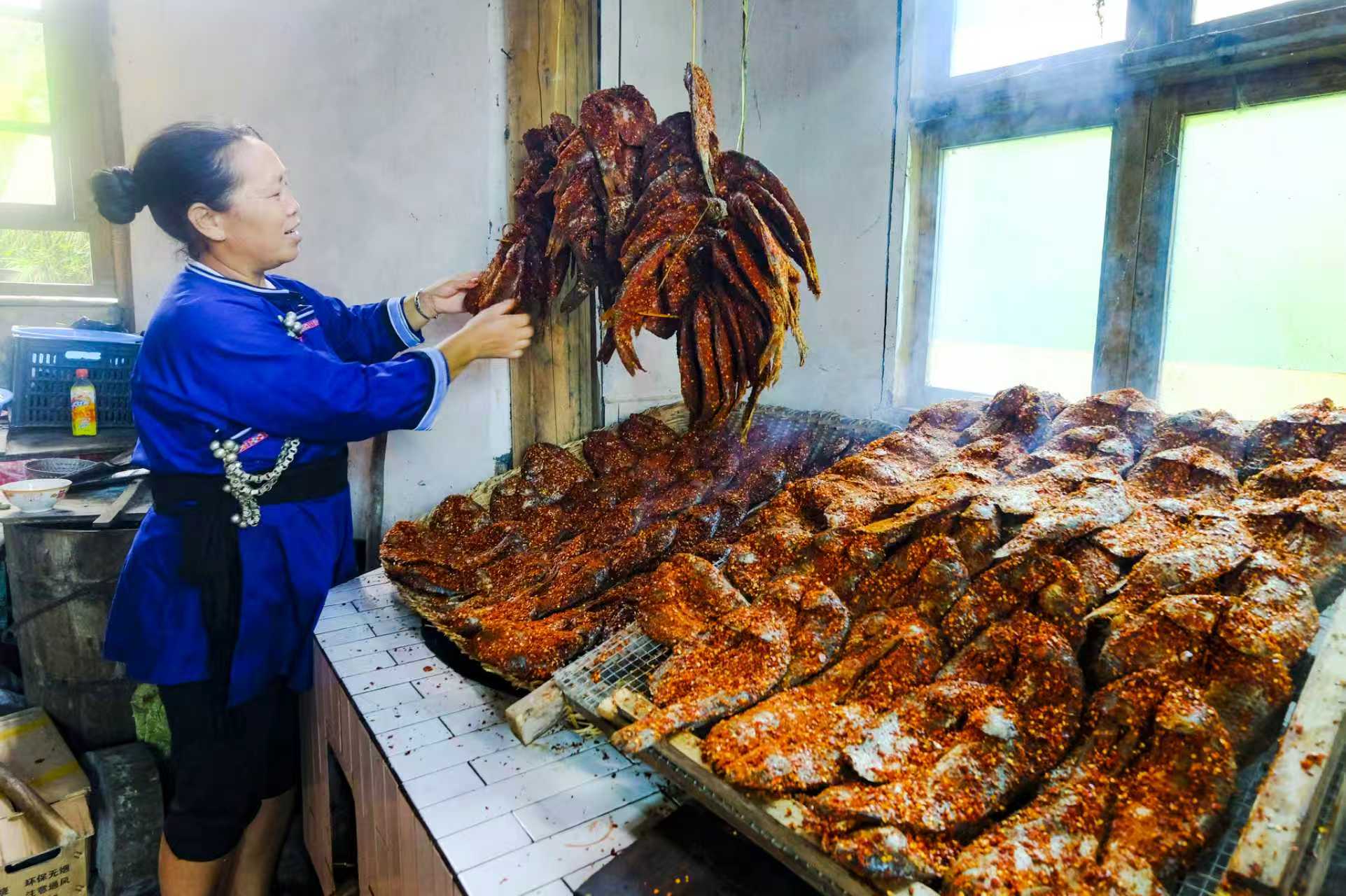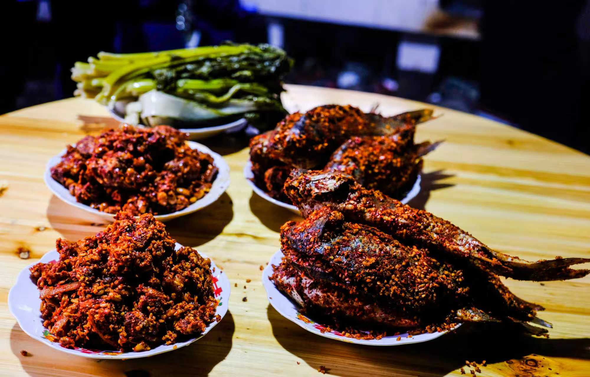 发酵成熟的石洞腌鱼,色泽红亮诱人,肉质紧实不松散,口感层次丰富。初尝是糯米的甜、米酒的醇,接着是辣椒的鲜辣与花椒的麻香,尾调带着山苍子的清香与鱼肉本身的鲜甜,酸、甜、辣、麻、鲜五味交融,越嚼越香。当地人食用腌鱼的方式多样,可直接切片冷食,感受原汁原味的醇厚;可煎至两面金黄,让表皮焦香、内里软嫩;也可与青菜、豆腐同煮,酸汤的鲜味融入汤汁,成为暖身驱寒的佳肴。值得一提的是,长期发酵让鱼肉中的蛋白质转化为氨基酸,不仅风味更佳,也更易被人体吸收,这正是山地民族适应环境、利用食材的生存智慧。