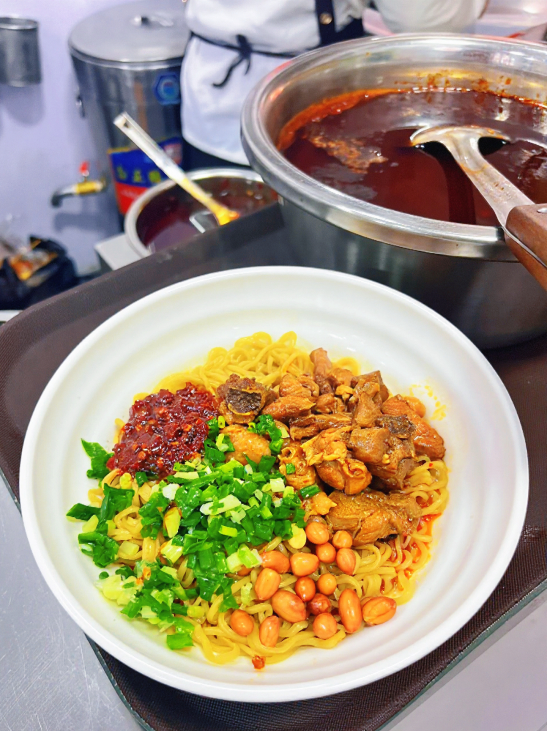 辣鸡面用本地的糍粑辣椒与鸡肉一同猛火爆炒