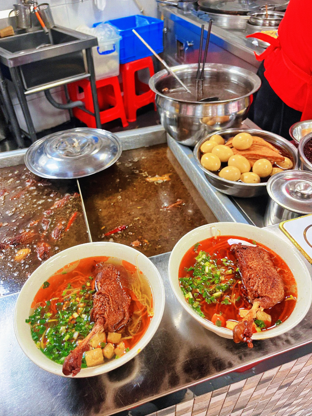 最后浇上滚汤,淋一勺红油