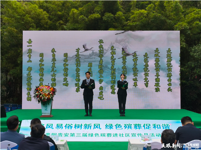 启动仪式上,贵阳市民政局党委委员、副局长张楠致辞,向全体市民发出要践行移风易俗改革、厚植惠民利民情怀和争创文明安全示范的呼吁,呼吁全体市民用实际行动坚持节俭治丧、支持生态殡葬、选择绿色文明祭扫,并加强对身边人和周围群众的宣传引导,自觉抵制陈规陋俗,树立节俭、生态、人文、绿色殡葬新风。