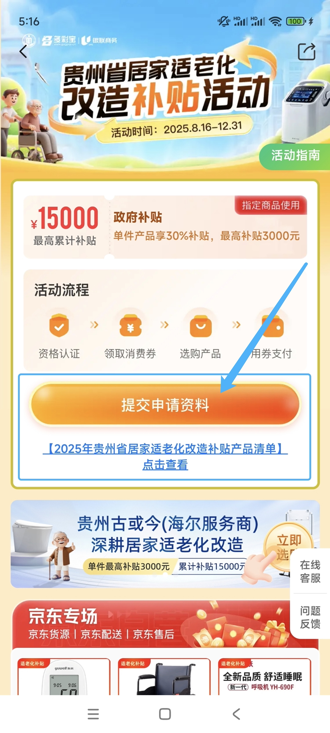 登录“多彩宝”APP,点击“适老化补贴”即可进入申请。