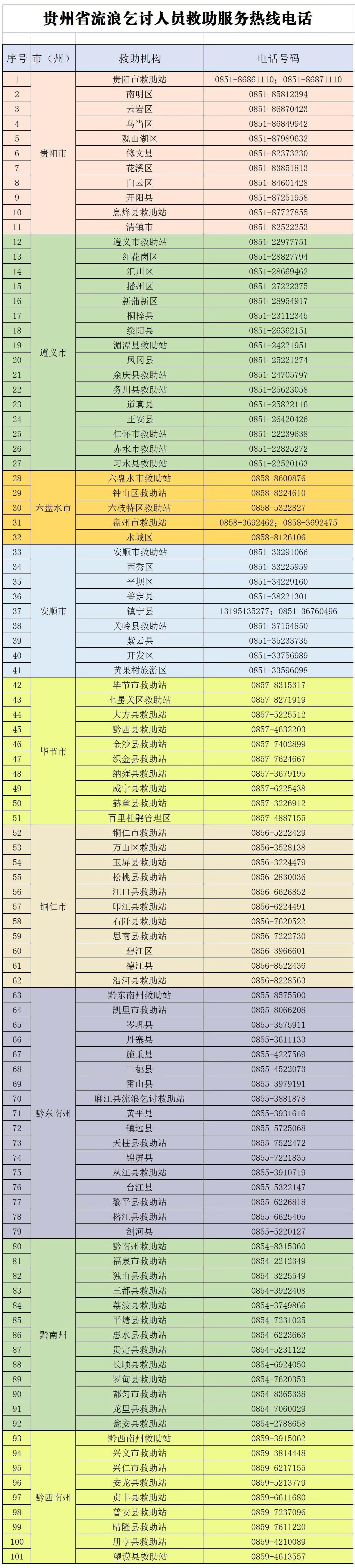 贵州省流浪乞讨人员救助服务热线电话
