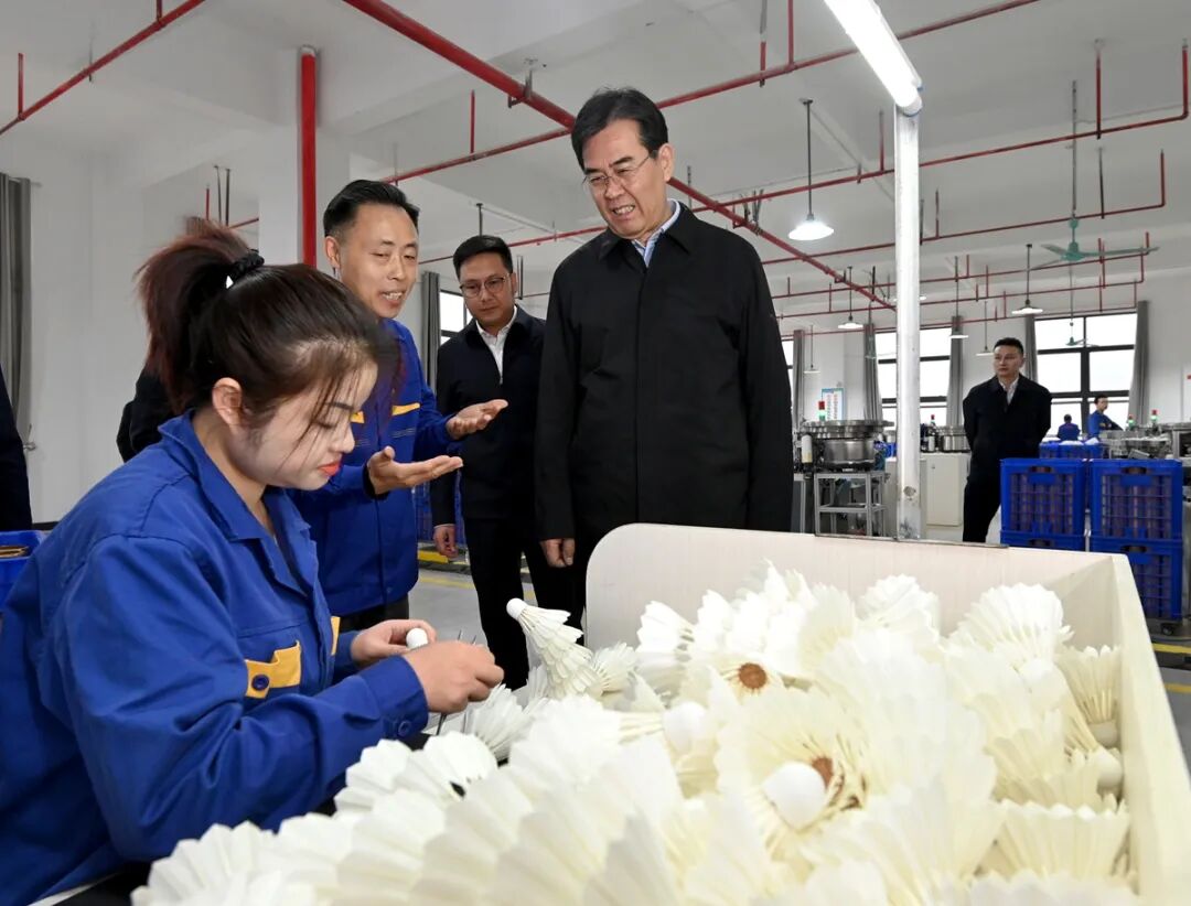 图为李炳军在锦屏经开区调研运动装备产业。