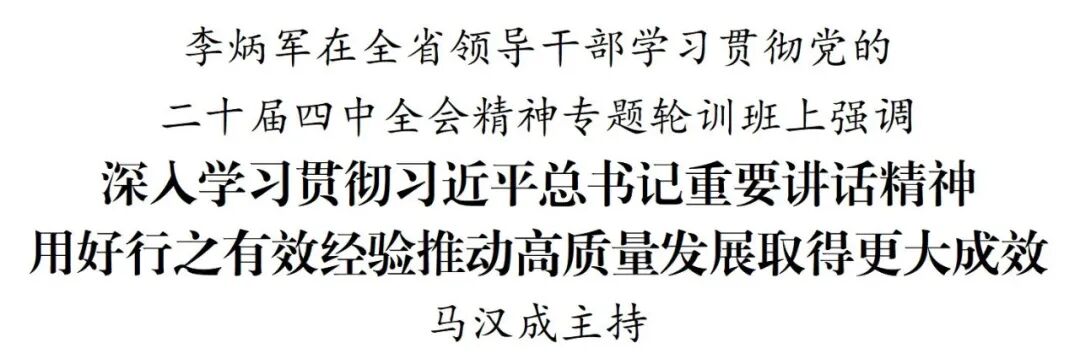 2月5日,省委副书记、省长李炳军在全省领导干部学习贯彻党的二十届四中全会精神专题轮训班上作辅导报告。他强调,要深入学习贯彻党的二十届四中全会精神和习近平总书记在贵州考察时的重要讲话精神,更加坚决有力地贯彻党中央重大决策部署,推动贵州高质量发展和现代化建设取得新的更大成效。省委副书记马汉成主持。省领导李元平、卢雍政、胡忠雄、李睿、王雷、郭锡文、曲林、李豫贵、董家禄、蔡朝林、张敬平、罗强、杨同光、郭成林、李建、石化清、孙发,省法院院长茆荣华、省检察院检察长王永金参加。