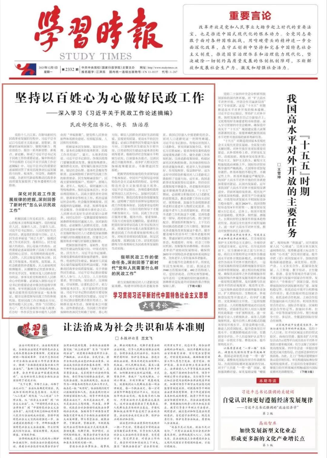 陆治原在《学习时报》发表署名文章:坚持以百姓心为心做好民政工作——深入学习《习近平关于民政工作论述摘编》