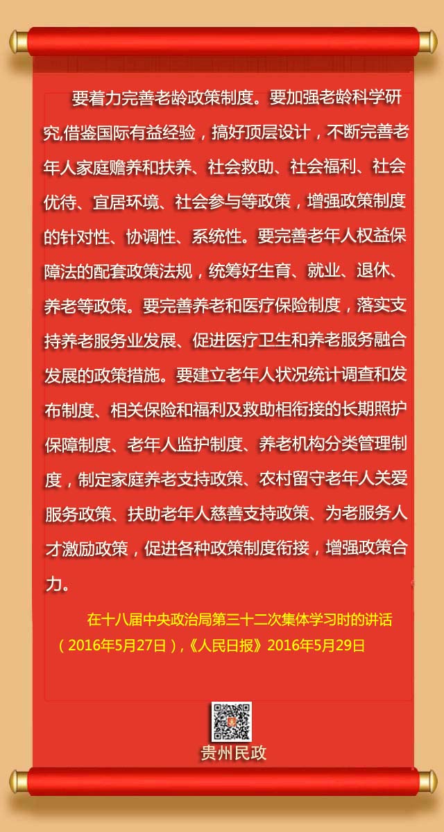 习近平总书记指出,民政工作关系民生、连着民心。党的十八大以来,以习近平同志为核心的党中央从战略和全局高度加强党对民政工作的领导,坚持以人民为中心,加强普惠性、基础性、兜底性民生建设,解决好人民最关心最直接最现实的利益问题,推动民政事业持续健康发展。习近平总书记围绕民政工作发表了一系列重要论述。为帮助广大干部群众准确学习、理解、把握习近平同志有关重要论述,中央文献出版社编辑了《习近平关于民政工作论述摘编》。为进一步深入学习宣传贯彻好习近平关于民政工作的重要论述,贵州省民政厅通过政务新媒体开设《学习时间》专栏,与大家一起深入学习习近平总书记关于民政工作重要论述。今天推出第060期: