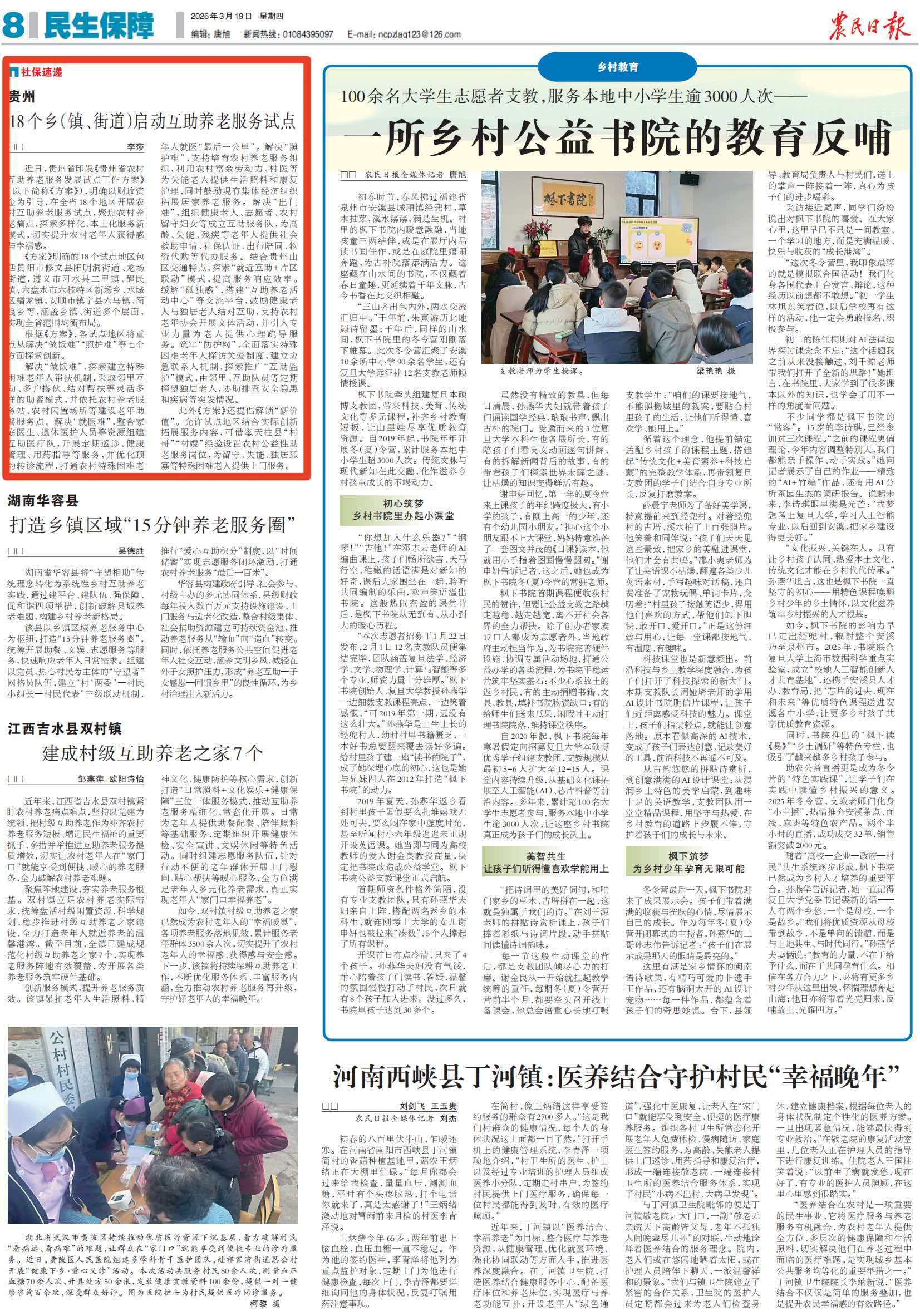 此外《方案》还提倡解锁“新价值”。允许试点地区结合实际创新拓展服务内容,可借鉴天柱县“村哥”“村嫂”经验设置农村公益性助老服务岗位,为留守、失能、独居孤寡等特殊困难老人提供上门服务。