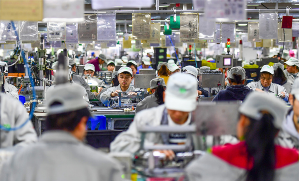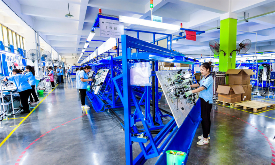 道真自治县上玉工业园区贵州顺创电器有限公司,生产线上的工人忙碌有序作业。贵州日报天眼新闻记者 陈慧 摄