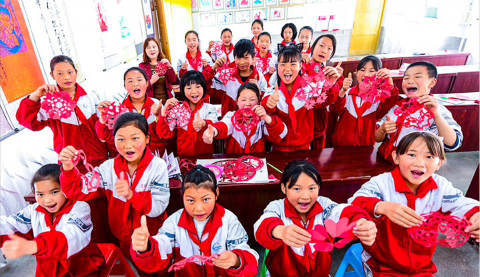 石阡县一所乡村小学的同学们展示自己的剪纸作品。贵州日报天眼新闻记者 陈慧 摄