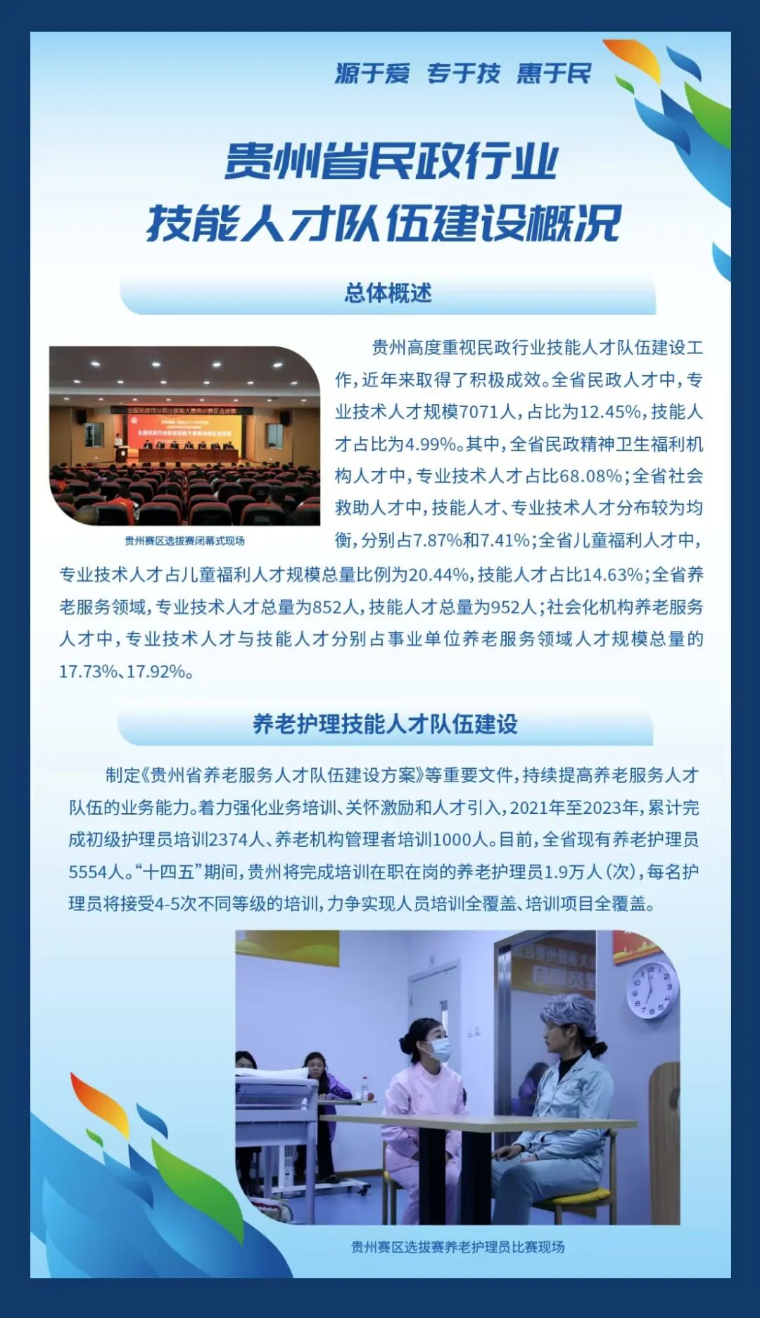 来自全国32支参赛队的300余名民政行业优秀选手将展技能风采,筑为民匠心,以精湛技艺传递职业温情,不断提升民政服务的专业化水平。贵州10名选手从省级选拔赛中脱颖而出,参加本次全国民政行业职业技能竞赛大赛决赛。