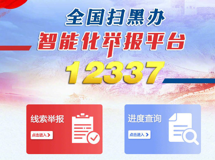 5月28日,全国扫黑办召开新闻发布会,向社会公开发布升级后的智能化举报平台www.12337.gov.cn。通过扫描专用二维码、网上搜索“12337”等举报链接,就可随时随地、方便快捷地登录平台,一次举报只需填写举报人、被举报人、黑恶势力违法犯罪情况和“保护伞”情况4大类信息。一般情况下,只需3分钟即可完成,提交成功后全国扫黑办即可实时受理。