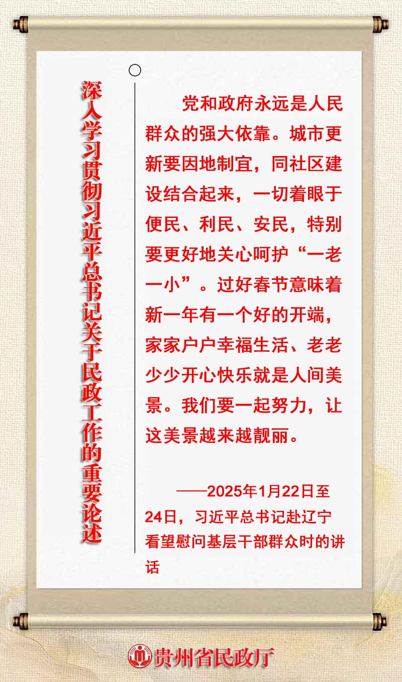 为进一步深入学习宣传贯彻好习近平总书记关于民政工作的重要论述,贵州省民政厅通过“两微一网”(微信、微博、网站)开设的《学习时间》专栏,与大家一起学习。今天学习第九十三篇: